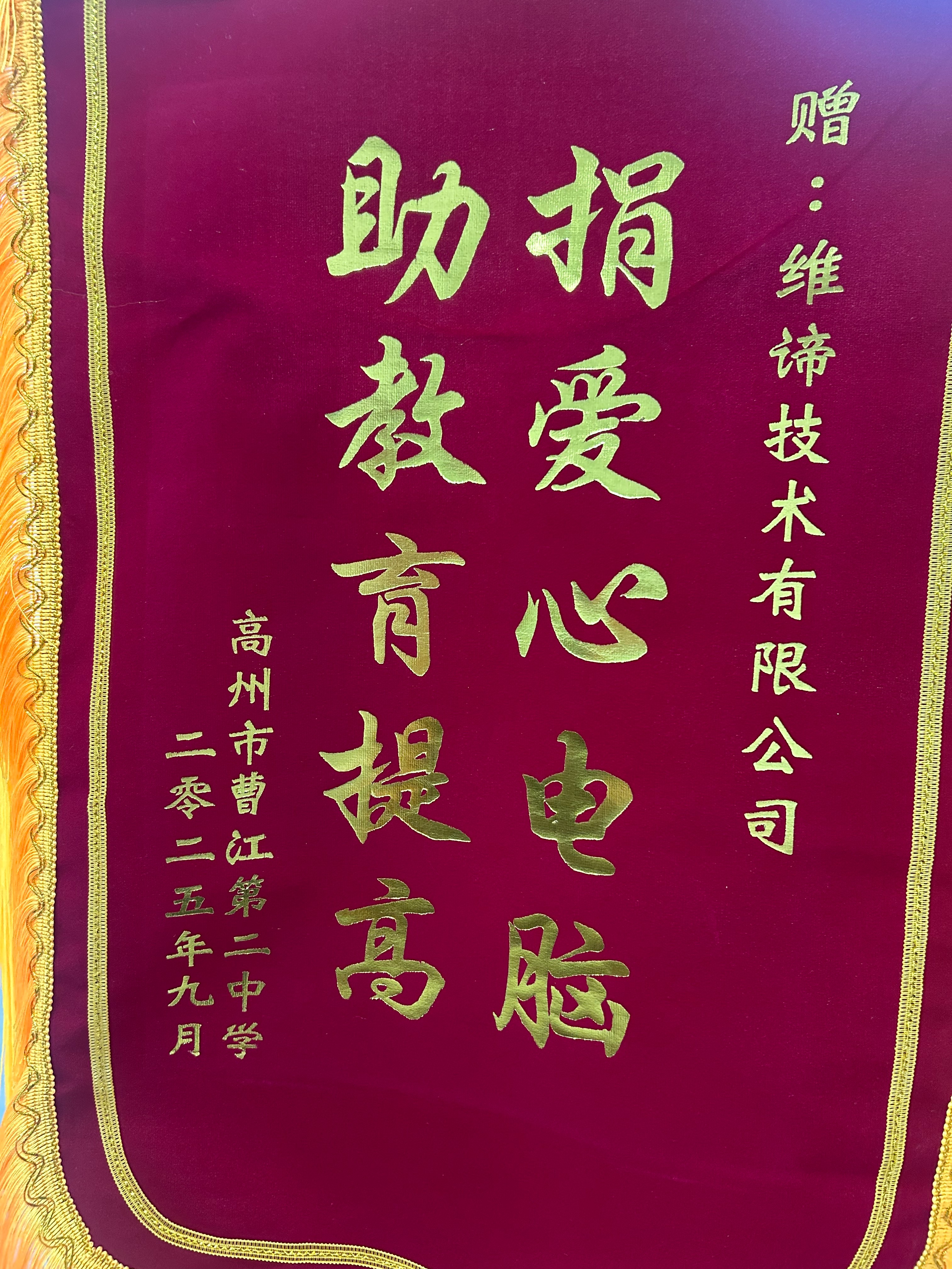 受贈學校:高州市曹江第二中學、陸河縣新田鎮逸夫小學